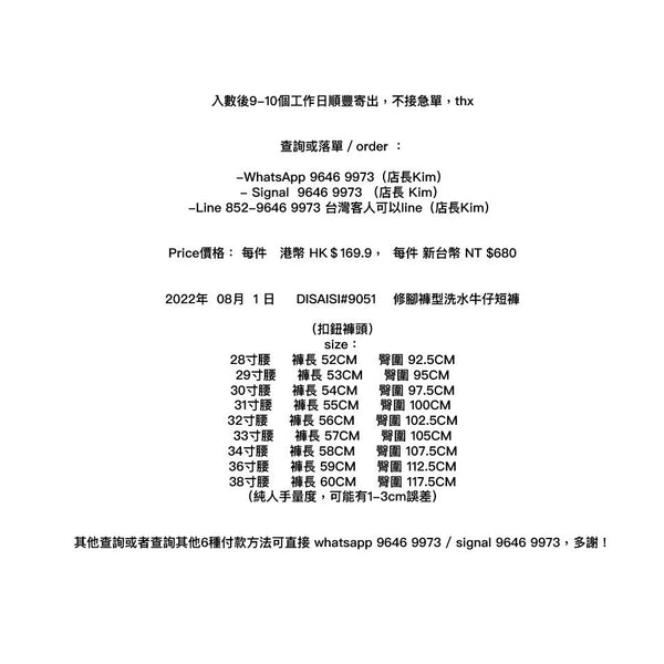 DISAISI#9051 修腳褲型洗水牛仔短褲